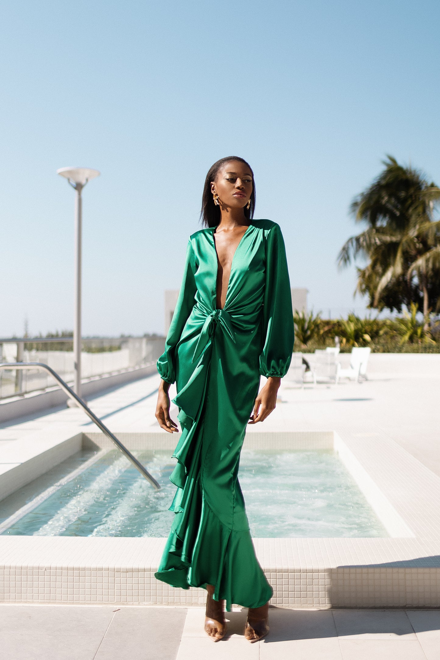 - Този модел е изработен от еластична сатенена копринена тъкан