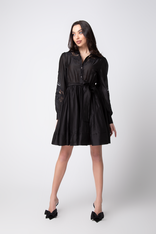 Комплект с бродирани цветя и пайети в черно Alessia